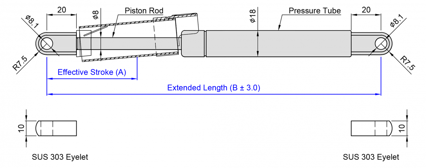 Basically, the principle of actuation is the same as that of a general gas spring. Mainly in the piston rod side append steel tube and spring component.Avoid the failure of the gas spring pressure or the supported mechanism is dangerously caused by other external forces or momentary gusts that cause the cover to close instantly.