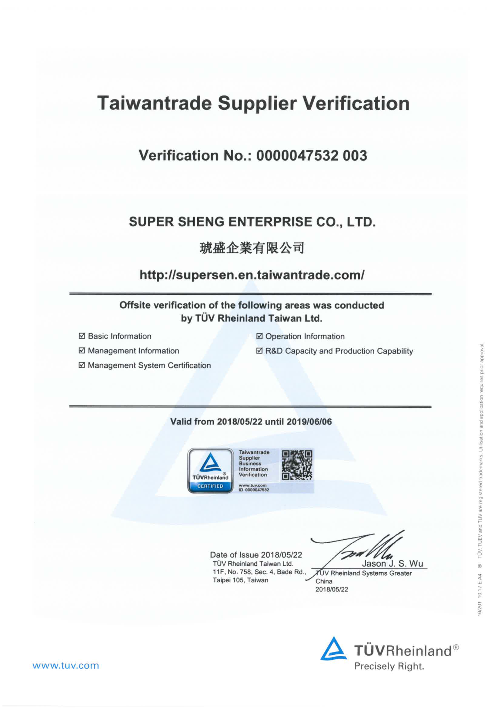 SUPERSEN Have been approved by Germany TUV Rheinland certified.